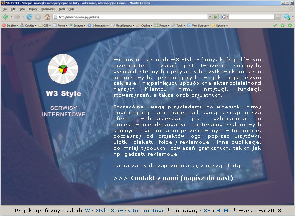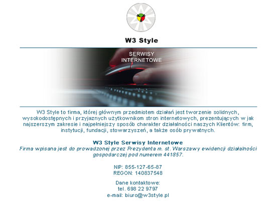 Pojedyncza strona WWW bez zakładek-podstron, w indywidualnej oprawie graficznej