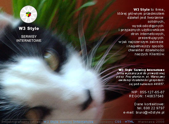 Wizytówka WWW spełnia wszelkie wymogi poprawnego HTML oraz CSS. Mimo skromnej zawartości posiada pełną dostępność i funkcjonalność strony internetowej.